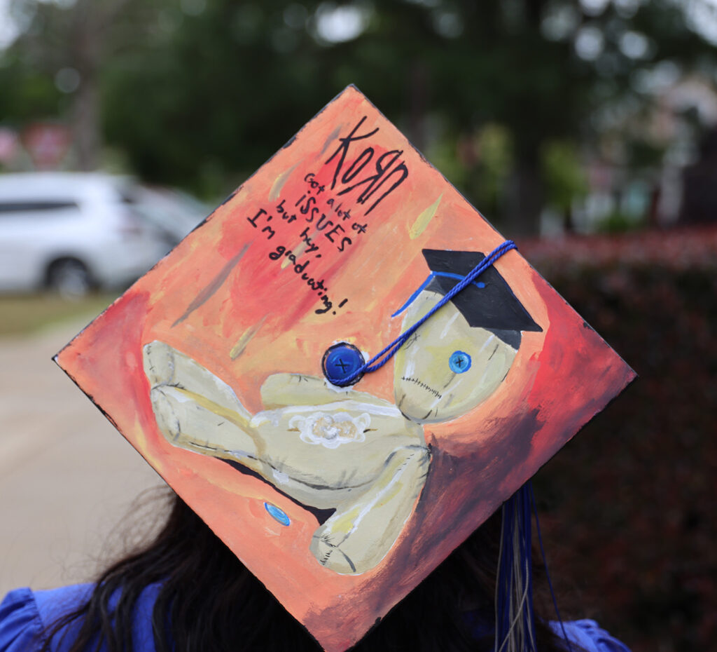 Students tapped into their creativity by customizing their mortarboards.