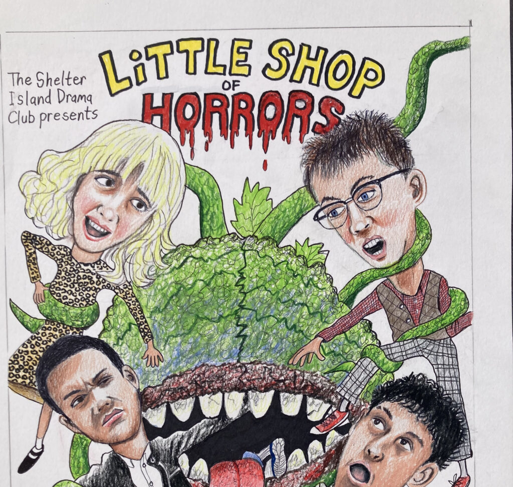 The 202-26 Shelter Island School girls basketball team. From left, Madison Sobejana, Makayla Cronin, Kylie Kuhr Leonard, Keili Osario Lopez, Natalie Mamisashvili, Maeve Springer and Coach Shannon Bogaski. (Courtesy photo)